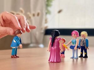 Après avoir observé l’image, je lui poserai des questions, je lui demanderai de changer la position de certaines figurines et nous verrons comment il se sent avec ces changements. Je peux aussi utiliser les phrases de guérison qu’elle doit répéter en s’adressant à un certain membre du système.